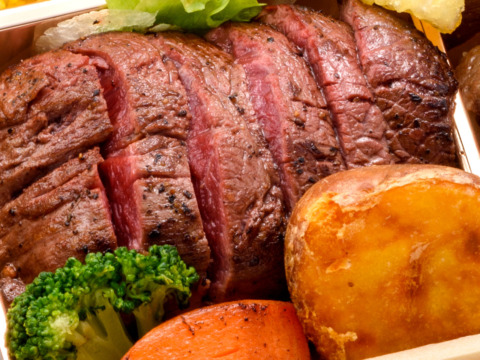 道産牛ヒレステーキとすき焼き(すき焼きの下にご飯)